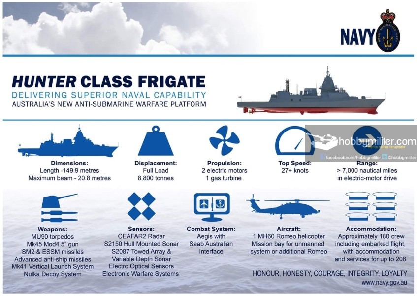 Australia saat ini sedang membangin Air Warfare Destroyer. Hobart Class AWD Australia yang baru saja operasional 1 unit, dan 2 unit sedang dalam pembangunan ini, ternyata sudah dipikirkan kapan pensiunnya dan kapan Australia harus mulai melakukan desain dan pengembangan kapal penggantinya. Baru saja mbrojol kok sudah mikirin pensiun…
