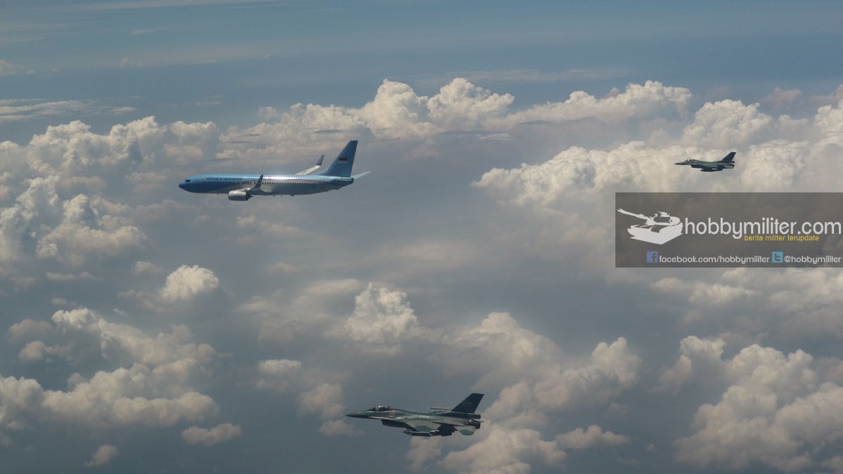 Dalam perjalanan nya ke Jakarta, Wapres RI Jusuf Kalla dikawal oleh unsur pesawat jet tempur F-16 Fighting Falcon milik Skuadron Udara 3 TNI Angkatan Udara (TNI AU). Sebanyak tiga unit pesawat jet tempur F-16 TNI AU mengawal penerbangan dengan call sign Indonesia-2 tersebut. Ditengah perjalanan, Letkol Penerbang (Pnb) Agus Dwi “Wolverine” Aryanto mewakili TNI Angkatan Udara menyampaikan penghormatan dan ucapan terima kasih atas pengabdian Jusuf Kalla selama menjabat sebagai Wakil Presiden Republik Indonesia.
