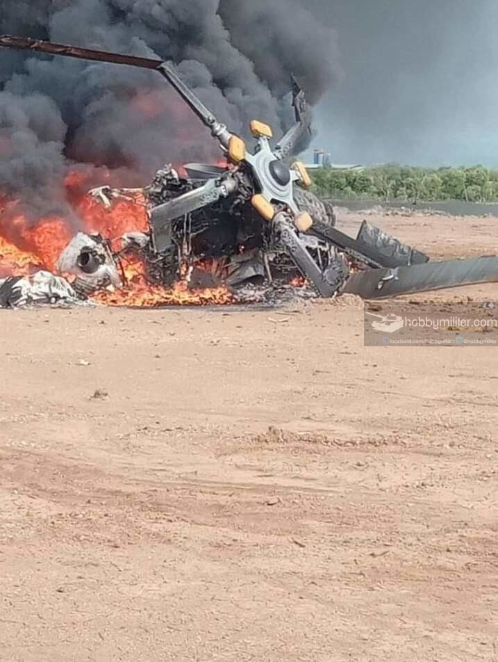 Salah satu foto menampilkan helikopter yang jatuh dan terbakar tersebut merupakan helikopter dengan lima bilah baling baling. Dan baling baling yang ditampilkan dalam foto tersebut adalah baling baling khas helikopter angkut TNI AD Mil Mi-17 buatan Rusia.