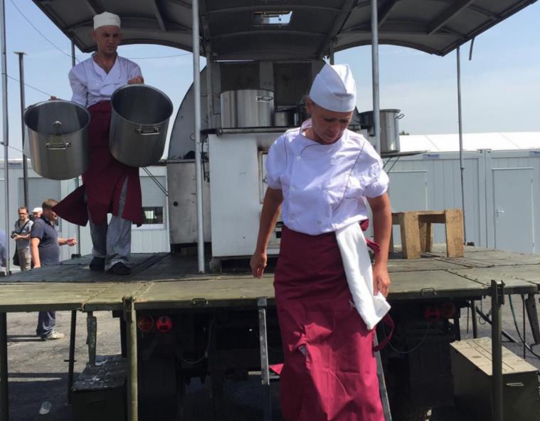 Kokinya, yang merupakan tamtama conscript, memasak dalam beberapa shift tugas. Mereka bertugas memastikan tersedianya makanan yang layak bagi kontingen militer Russia ini.