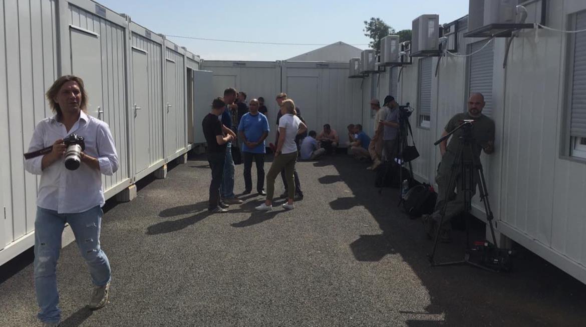 Beginilah suasana barak yang terbuat dari kontainer tersebut dari luar. Tampak segerombolan wartawan yang diundang oleh militer Russia untuk meliput aksi militer Russia di Suriah.