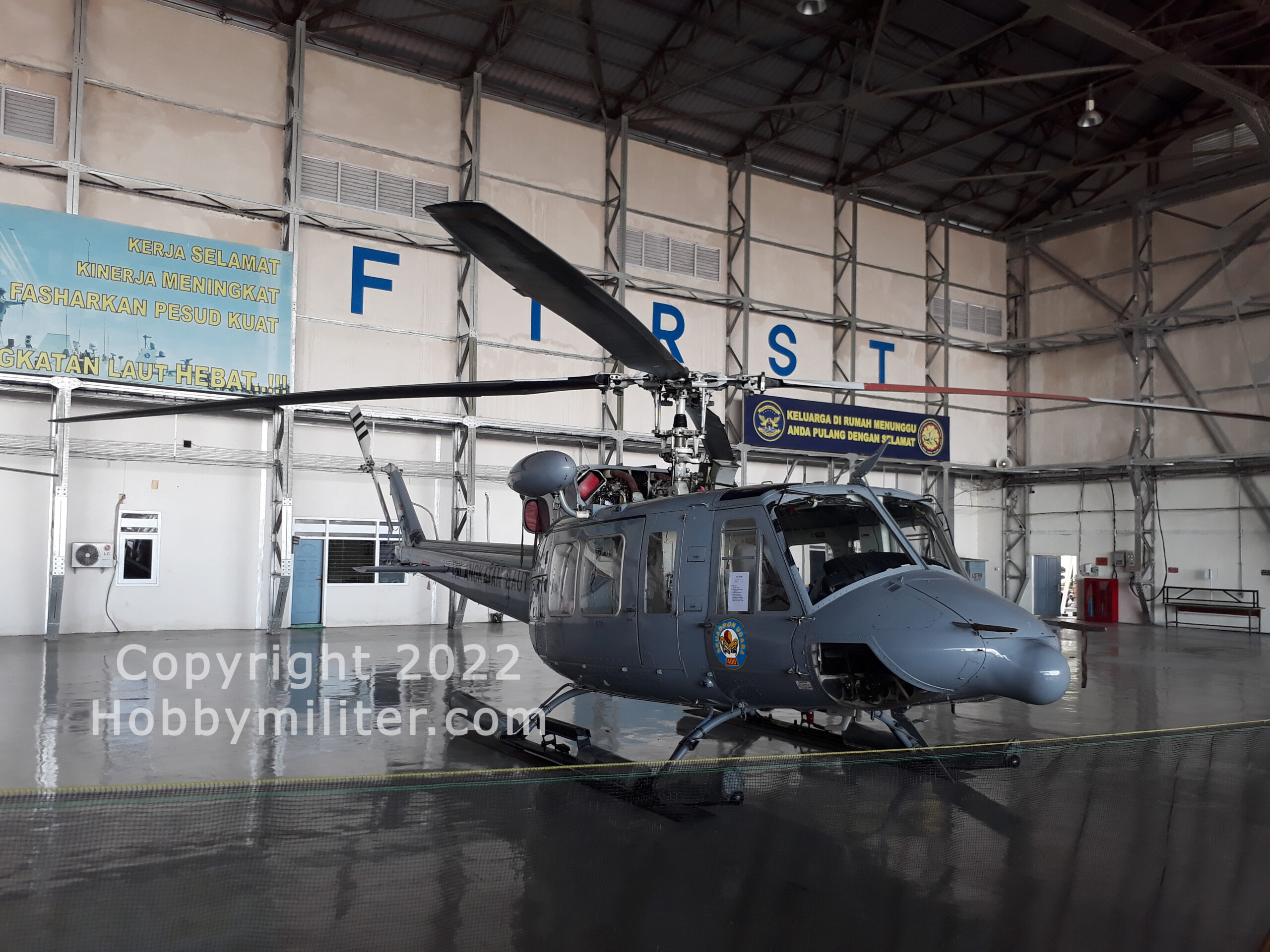 Mengenal Perbekalan Udara (Bekud) Pusat Penerbangan TNI AL. Helikopter NBell-412, Salah Satu Unsur Helikopter Yang Dimiliki dan Dioperasikan Puspenerbal, Nampak Dengan Bagian Mesin Yang Tidak Lengkap Karena Dalam Perawatan, Foto Diambil Pada Acara Navy Air Base Open Day 2022.