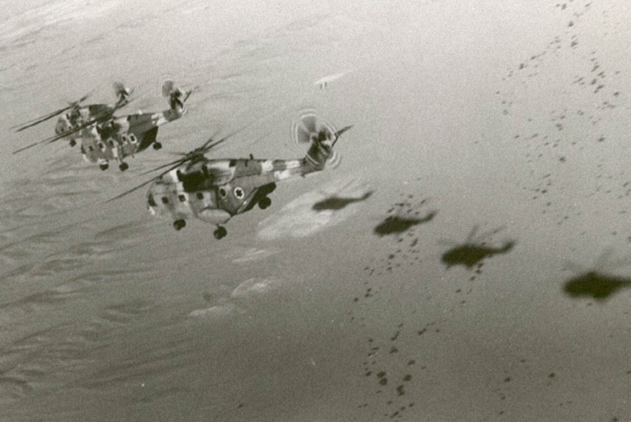 Iring-iringan heli selanjutnya berbelok tajam ke arah timur laut menyusuri tepi pantai agar irit bahan bakar meskipun risikonya tertangkap radar AU Lebanon. Saat mendekati kawasan bandara yang gemerlap disiram cahaya lampu kota Beirut, seluruh heli menurunkan ketinggiannya hingga kurang dari 100 m. Akibatnya pandangan para pilot agar terhalang kabut musim dingin dari Laut Tengah.