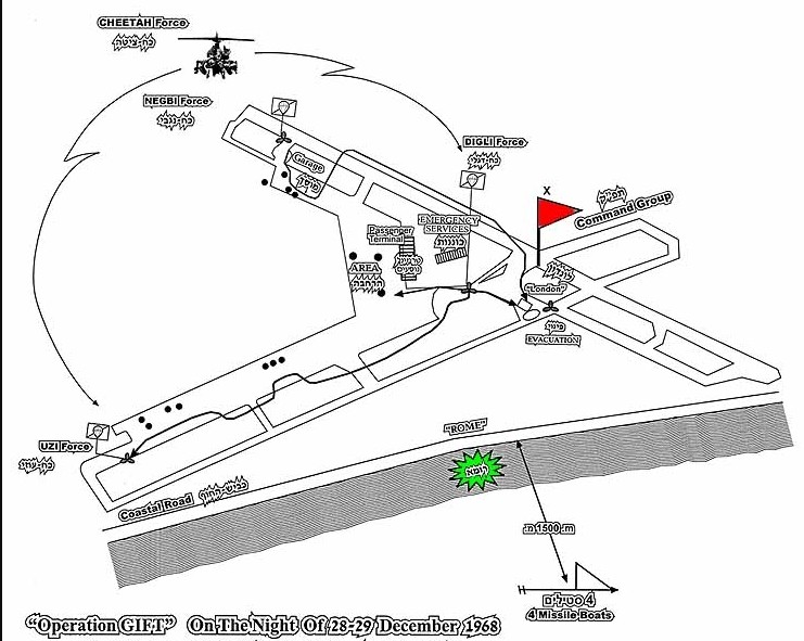 Belum lagi rencana matang, insiden Athena terjadi. Israel pun kalap. Lewat berbagai pertimbangan, akhimya diputuskan tujuan serbuan ke Bandara Beirut bukan saja untuk merampas. Operation Gift juga digelar untuk menghancurkan pesawat sebanyak-banyaknya dalam tempo sesingkat singkatnya. Operasi berbentuk serangan lintas udara pasukan komando dan bukan aksi pemboman oleh armada jet tempur Israel.
