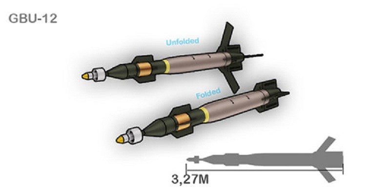 Realitanya jika target sudah terkena sinar laser, maka sirip pemandu (canard fins) yang terletak pada bagian belakang akan merespon dan siap meluncurkan bom menuju ke sasaran. Sayap pada airfoil group akan terbuka dan menjaga keseimbangan aerodinamika bom saat bermanuver. Dengan adanya laser guidance kit dan airfoil group, bobot GBU-12 diperkirakan mencapai 277 kg dengan membawa hulu ledak seberat 87 kg.