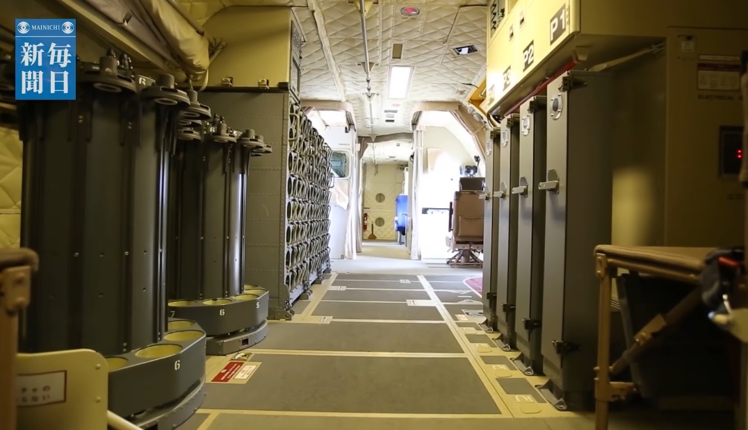 Di bagian perut, agak ke belakang, tertanam 30 tabung peluncur sonobuoy buatan Honeywell. Di bagian dalam pesawat terdapat rak khusus untuk tambahan 60 sonobuoy lagi. Perangkat ini terkoneksi dengan HQA-7 acoustic suites buatan NEC (Nihon Electric Company).