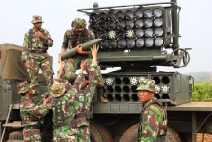 Foto buram ini menampilkan aksi MLRS TNI AD jaman itu dalam latihan gabungan ini. TNI AD mengoperasikan peluncur roket RM-51 kaliber 130mm buatan Czechoslovakia. Walaupun kalibernya 130 mm, lebih besar dari RHan misalnya yang hanya 120mm, tapi karena panjangnya tak seberapa, maksimum jarak jangkaunya pun pendek. Hanya 8 kilometer.