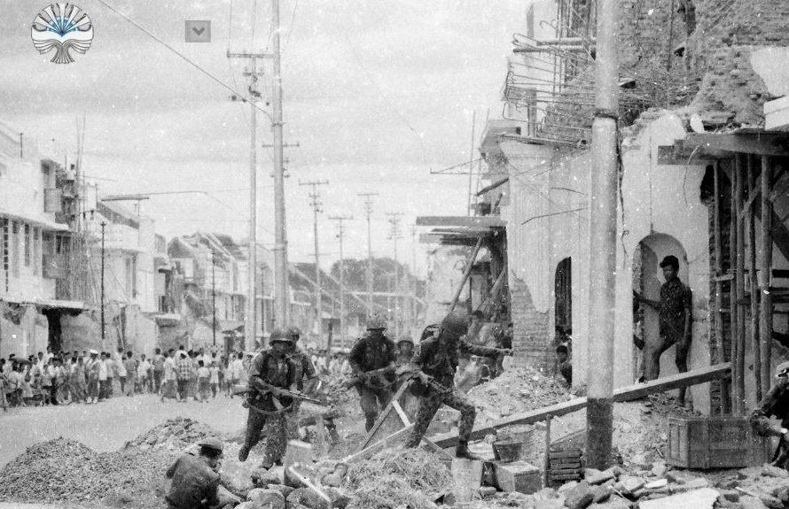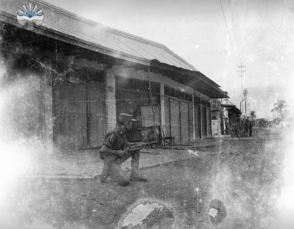 Personel TNI melakukan latihan militer di Cirebon. Tampak masyarakat bergerombol menonton dari seberang jalan. Berjongkong paling depan tampaknya tim dokumentasi sedang melakukan pemotretan. Scene ini tampak seperti salah satu adegan dari film Saving Private Ryan.
