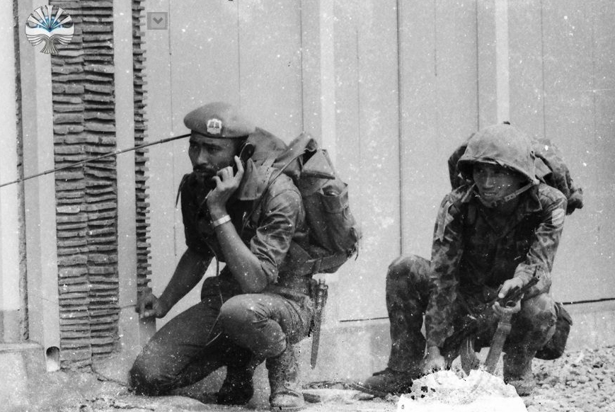 Personel perhubungan dengan radionya. Disebelahnya adalah personel Marinir dengan AK-47 nya. Tampaknya radioman tidak membawa senjata pertahanan diri.