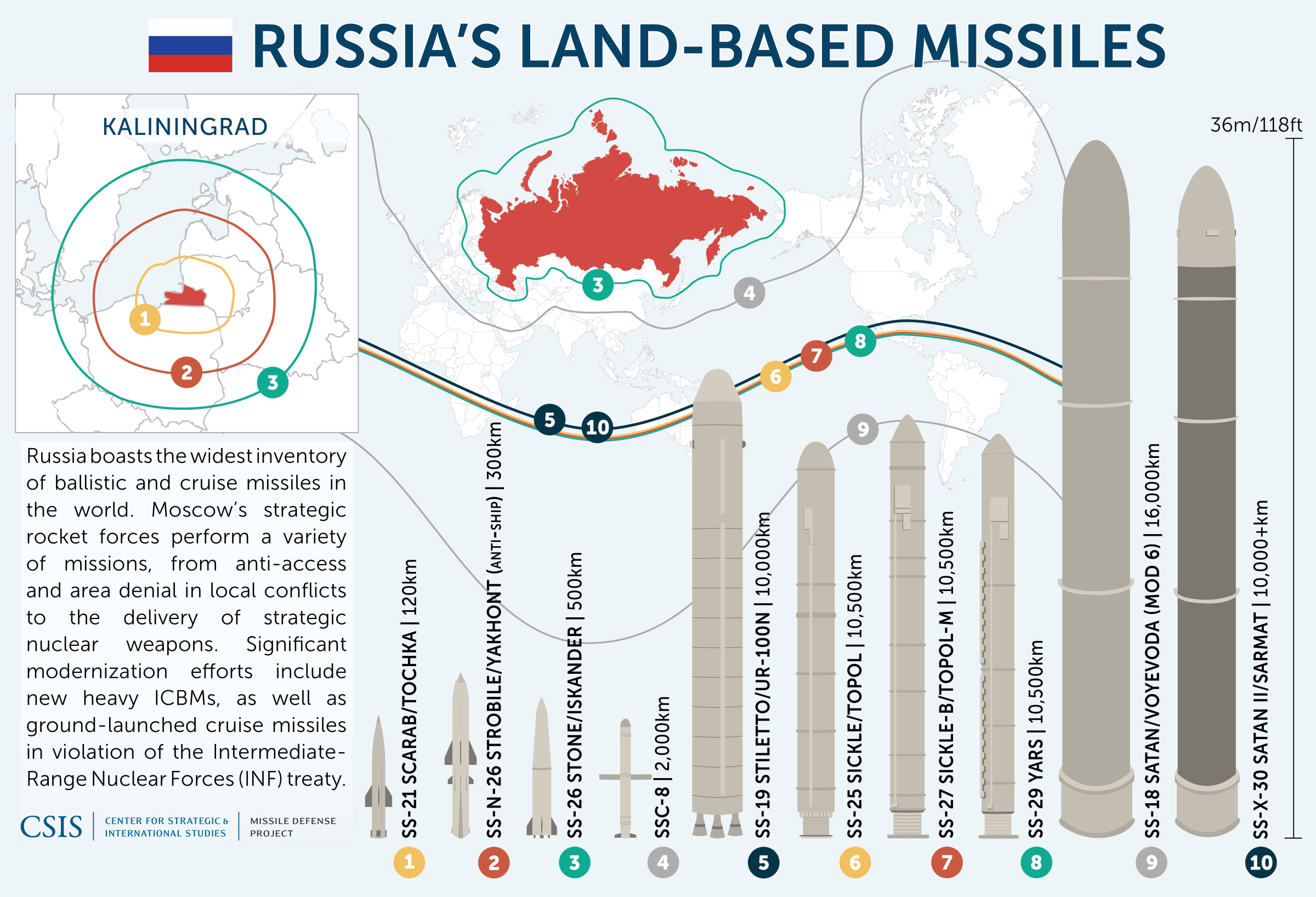 Sebagai pemilik sebagian besar teknologi militer Soviet, Rusia merupakan pemilik inventori terbesar rudal balistik dan rudal jelajah di dunia. Rusia, setelah berhasil berjuang memperbaiki ekonominya yang morat marit sepeninggal Uni Soviet, tetap meneruskan pengembangan berbagai teknologi rudalnya dari segala tipe. Dan pasukan roket strategis Rusia tetap menjadi elemen terpenting dalam setiap strategi militer global Rusia.